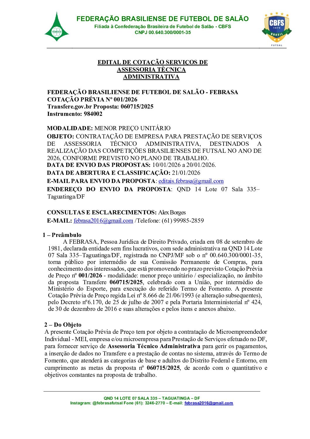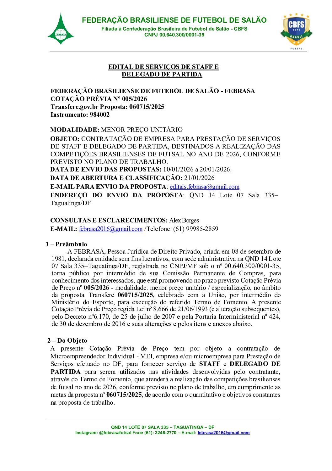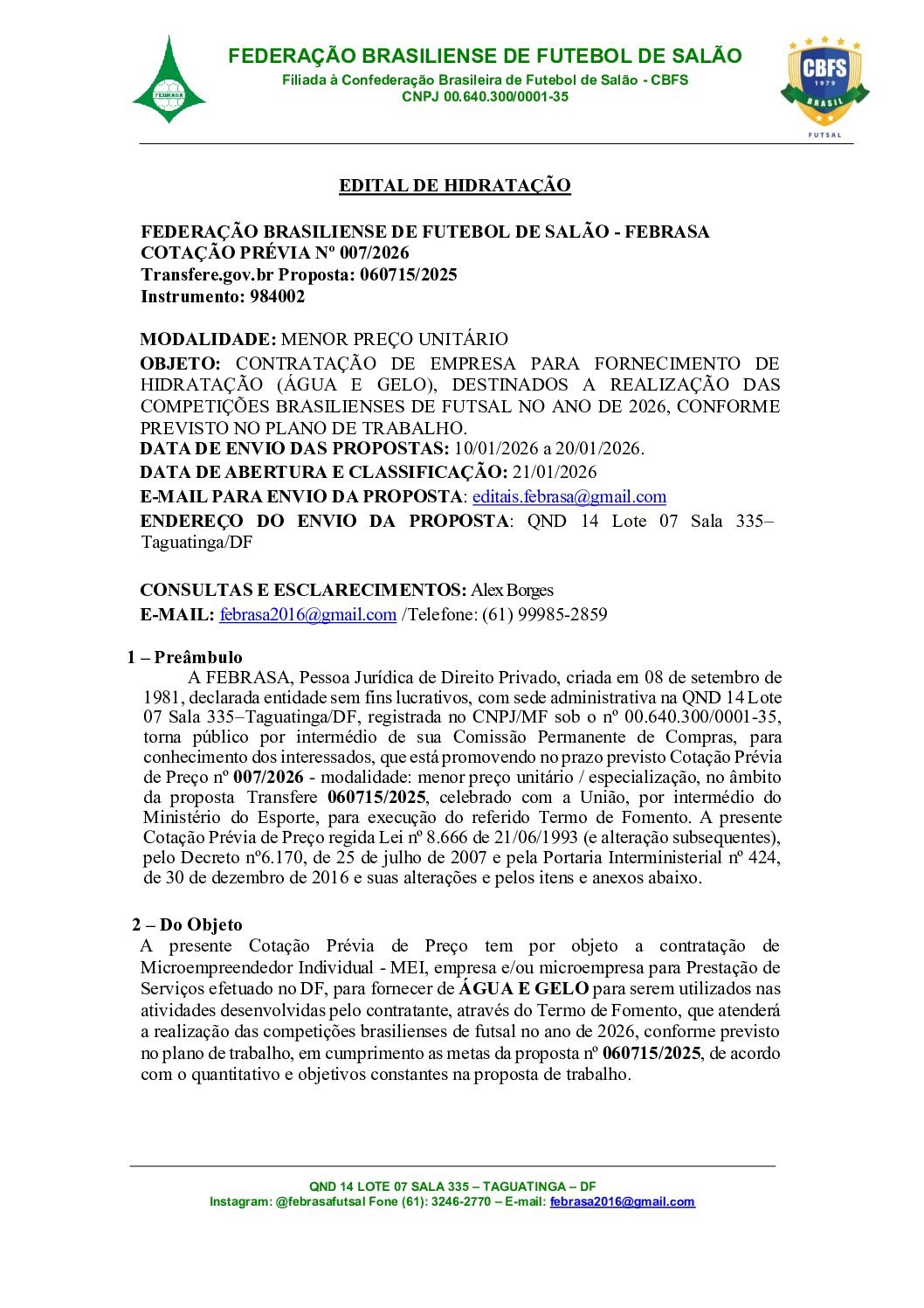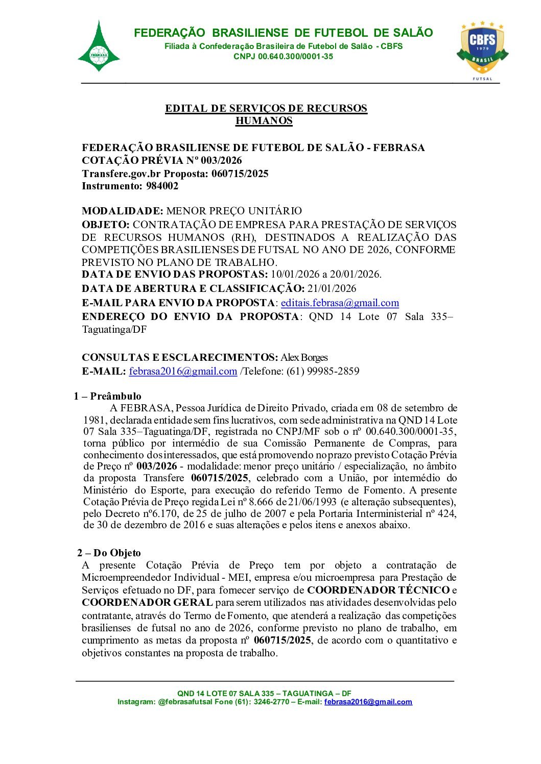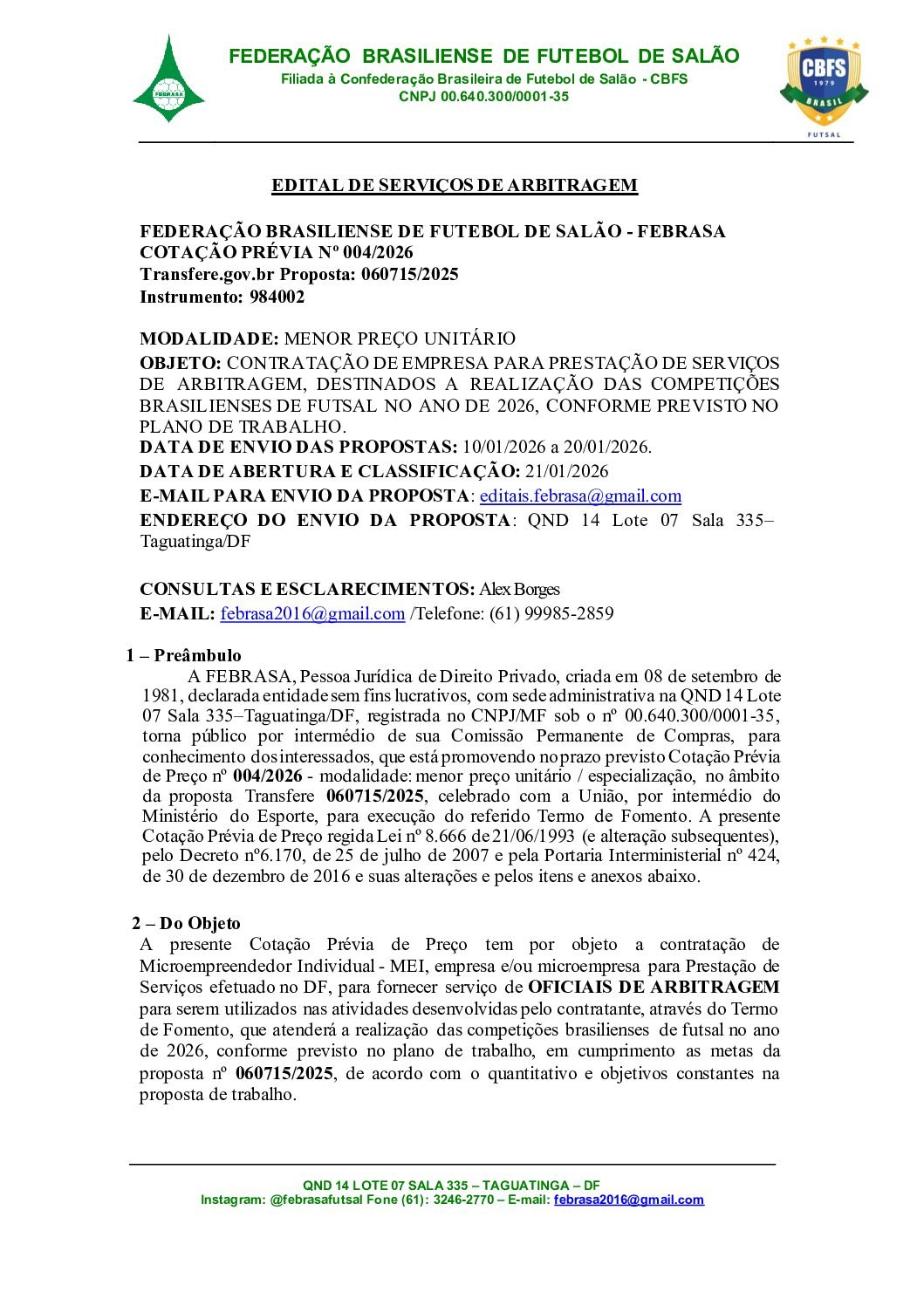 EDITAL SERVIÇOS DE ARBITRAGEM