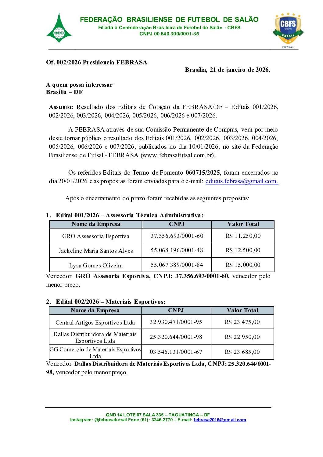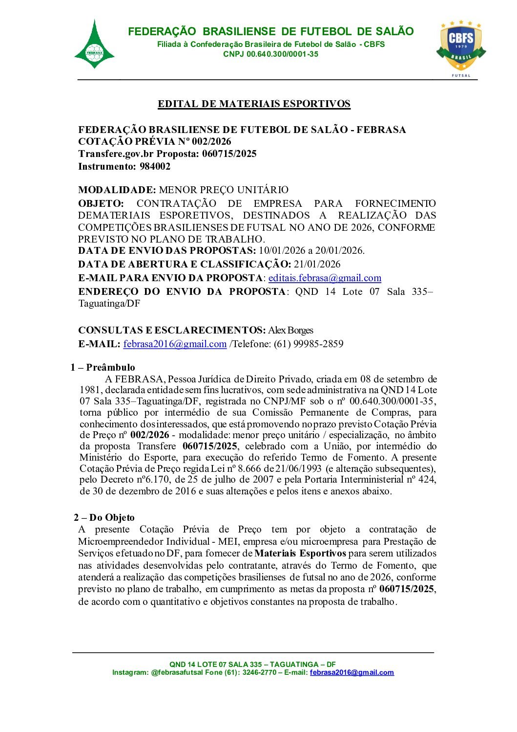 EDITAL DE MATERIAIS ESPORTIVOS